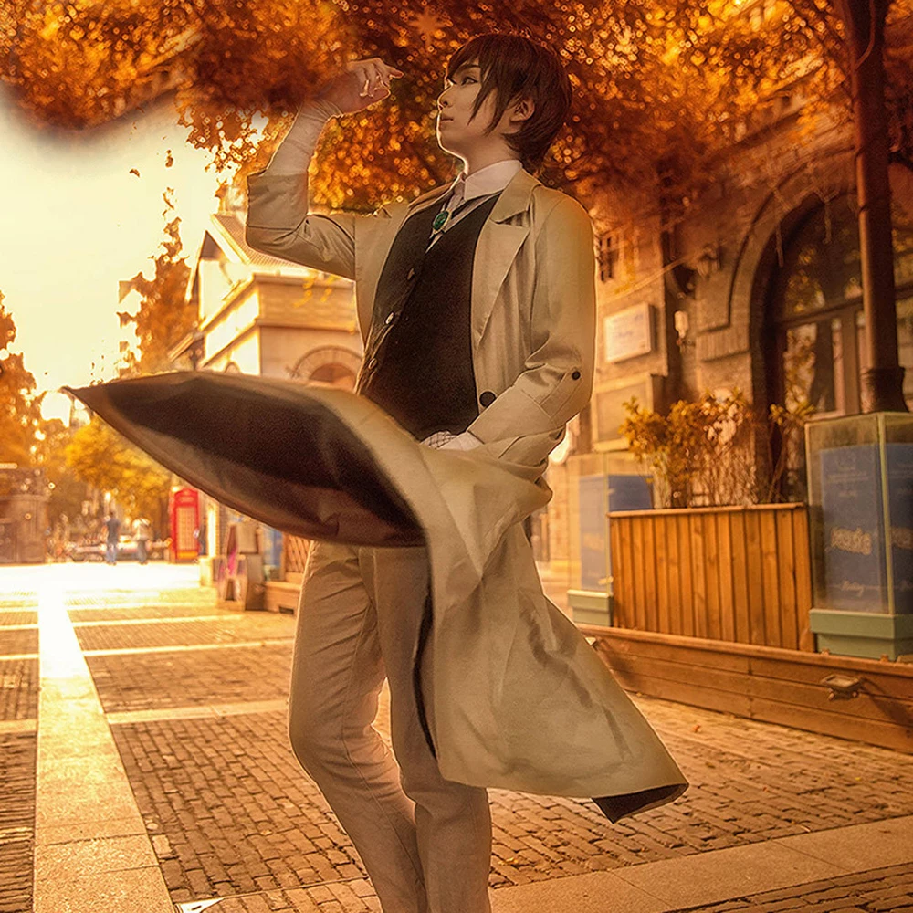 2019 аниме Осаму дадзай косплей плащ костюм брюки литературный жиле...