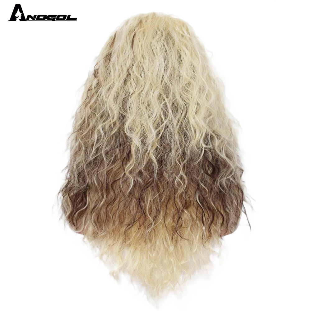 Женский длинный синтетический парик Anogol, в стиле диско, качающийся кудрявый, золотистый, светлый, коричневый цвет, для ролевых игр и вечевечерние, 70s 80s