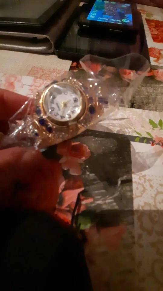 часы пришли хорошо упакованы,целые,без повреждения.работают,что порадовало.девочки,часы просто супер,они яркие,переливаются,очень красивые синие камни,смотрятся на руке дорого.я в восторге от них,не жалею,что заказала,хотя очень , очень долго ждала их.я думаю,что это из-за пондемии...спасибо продавцу.