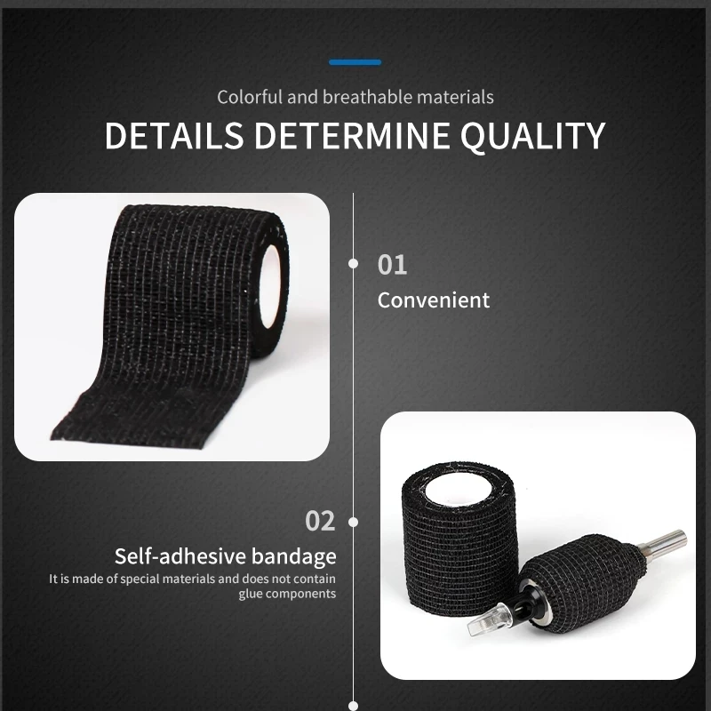 Тату-бандаж рулон поставки нетканых материалов эластичное движение покрытие рукоятки машинки для татуажа самоклеющиеся черный цвет 6 шт для тату ручка аксессуары поставка