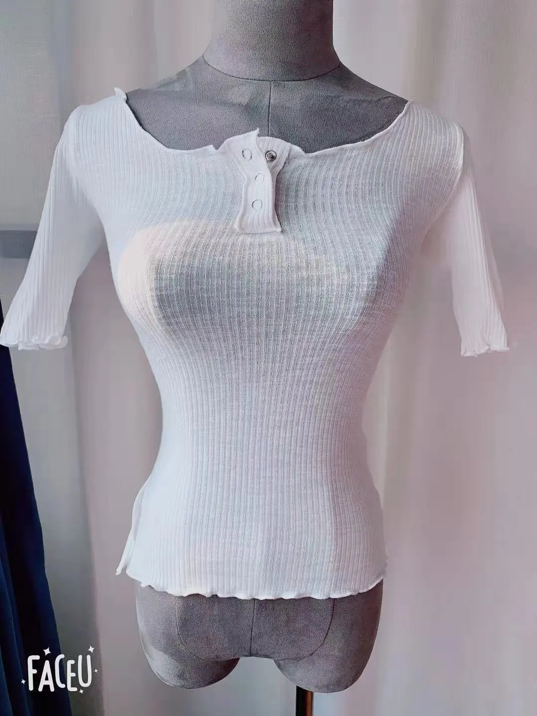 Женская эластичная футболка, облегающий топ с коротким рукавом, Лето Женский в Корейском стиле