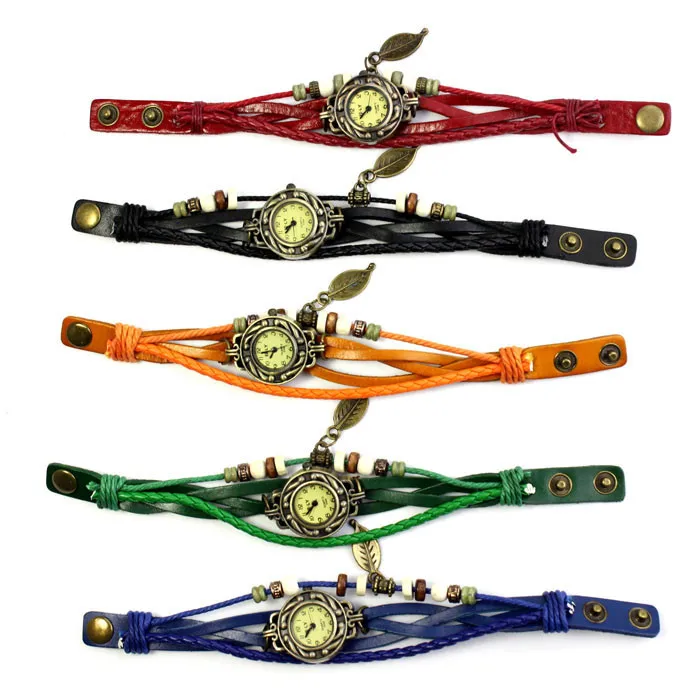 Часы наручные OTOKY женские кварцевые, модные повседневные винтажные наручные часы с кожаным браслетом, с листьями и бусинами, A30, 10 шт.