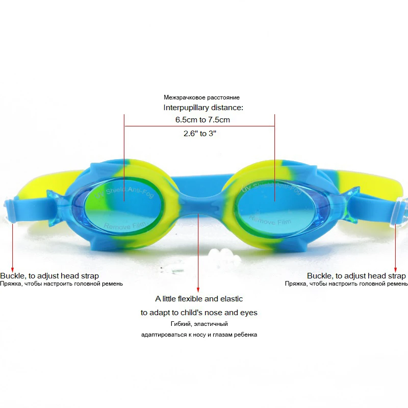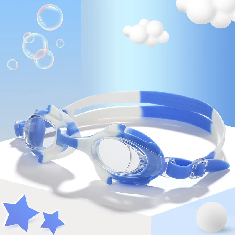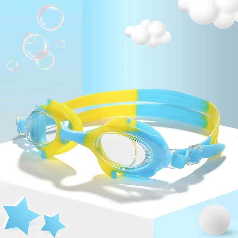 Силиконовые плавательные очки с мультяшными рыбками, детские очки для плавания, дайвинг, водные виды спорта, цветные водонепроницаемые противотуманные очки