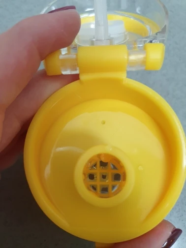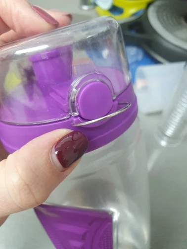 Я очень разочарована. Заказывала такую бутылку большего размера - фиолетовую. Очень понравилась. Поэтому заказала такую поменьше для дочки - желтую. Тут совершенно другой замок. Дочка не может открыть сама. Пластик плохо вырезан и нет отвода для воздуха