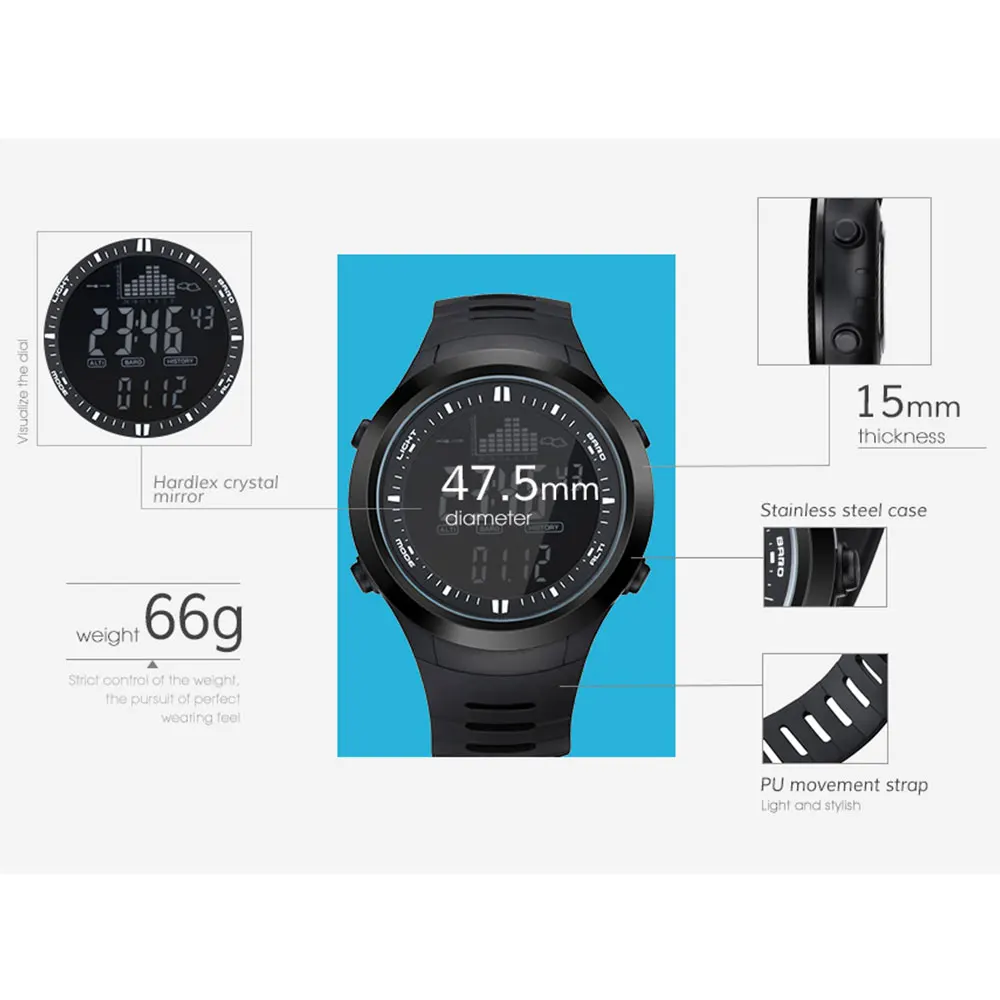 Смарт-часы мужские, 5 АТМ, водонепроницаемые, с высотомером, барометром, термометром, подсветкой