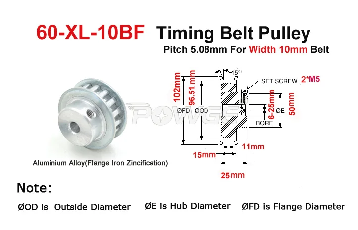 Зубчатый шкив POWGE 60 зубьев XL, отверстие 681012141517192025 мм, подходит для W = 10 мм XL, синхронный ремень 60 T 60 зубьев XL шкив 60-XL