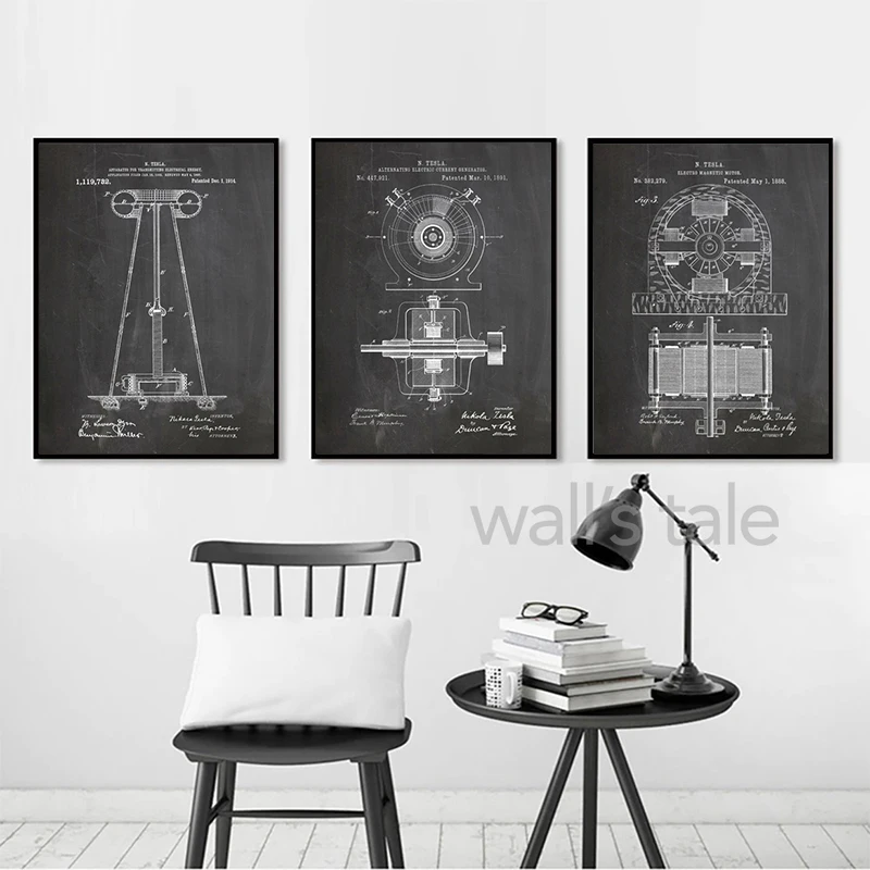 Для Nikola Tesla Motor Patent Blueprint винтажные постеры и принты с магнитным мотором настенная живопись на холсте подарок домашний декор