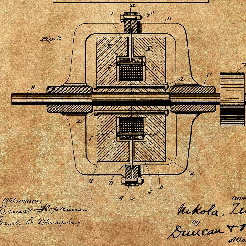 Nikola Tesla Motor Patent чертеж винтажные плакаты и принты искусство Магнитный мотор настенная Картина на холсте подарок домашний декор