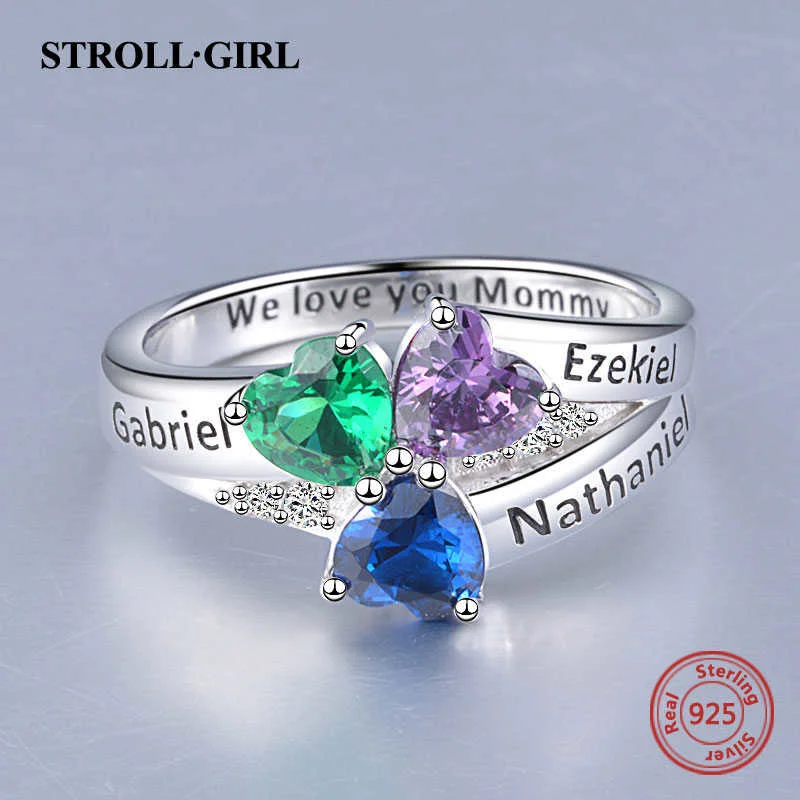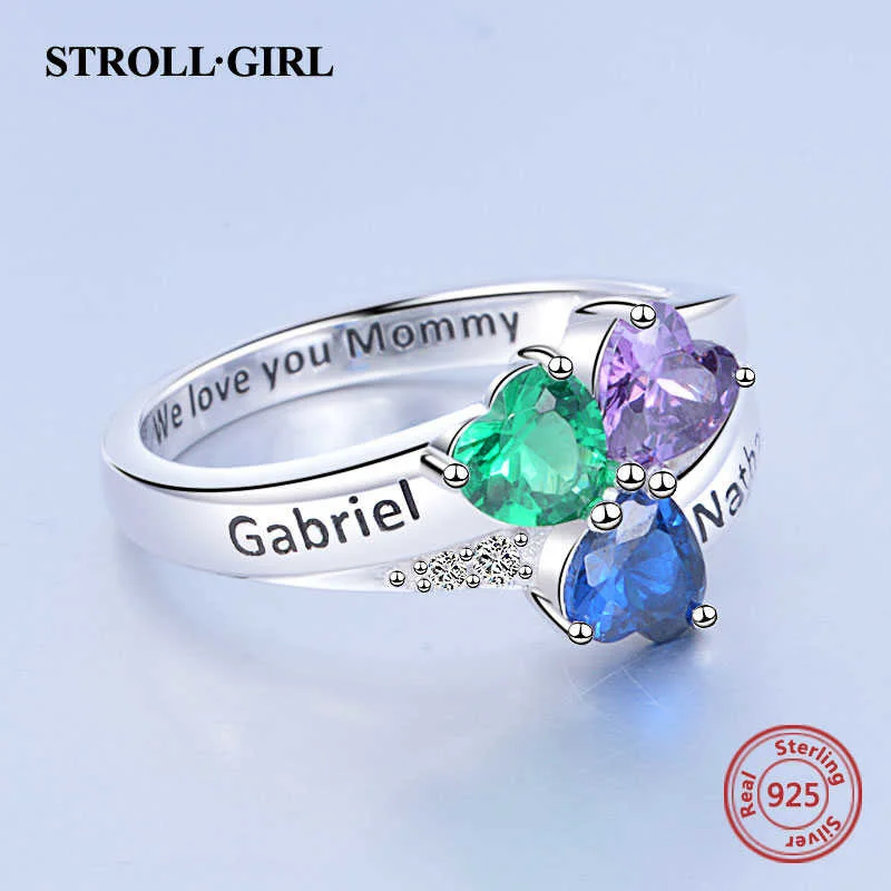 Strollgirl Аутентичные 925 стерлингового серебра на заказ камень-талисман в форме сердца с гравировкой названия кольца для женщин, для свадьбы и юбилей ювелирные изделия