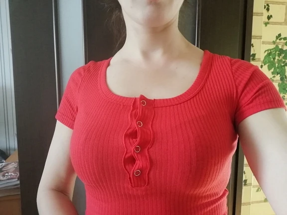 Хороший топ, заказывала до него черный, они одного размера по идее, но по факту красный свободнее, но не страшно. Спасибо!