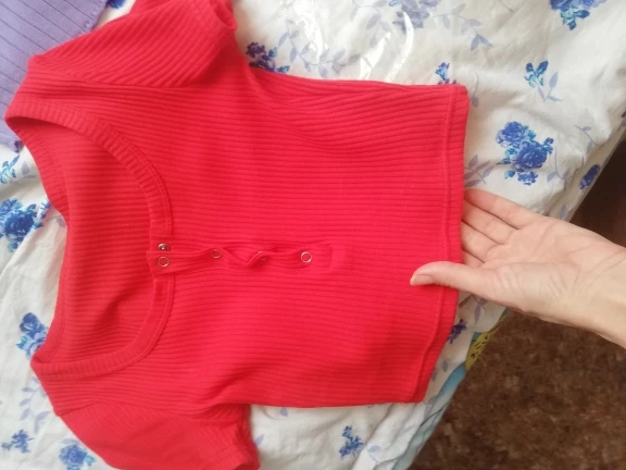 Продавец все сделал быстро, почта россии, как обычно, гоняла посылку по сортировкам 2 месяца. Топ пришёл без затяжек/брака по кнопкам и т.п., всё ок. Не красит при стирке. Пока просто подтверждаю получение, потом, возможно, дополню отзыв касательно размеров.