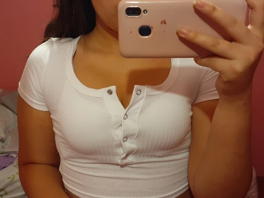 Топ хороший, но я не угадала с размером. Маловат на меня оказался :( Хотя думала, что нормально влезу со своим ог - 80... (вес 40, рост 158) Влезть то влезла, но жутко пережимает, даже с полностью расстегнутыми пуговицами. Но это проблема моя, а не продавца и вещи :) По качеству и материалу топ очень приятный! Советую брать, но с размером хорошо выясняйте! :)