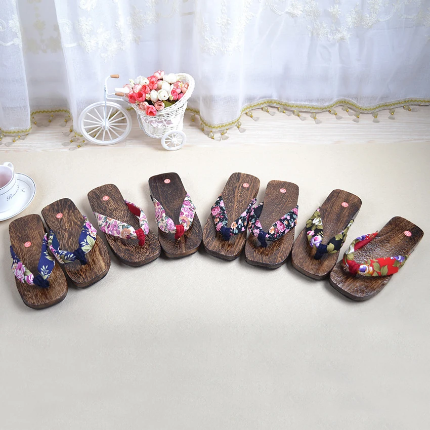 Летние тапочки для маленьких мальчиков; Деревянные японские гэта-сабо; Вьетнамки для девочек с цветочным принтом; Сандалии для костюмированной вечеринки на Хэллоуин; Одежда для сцены