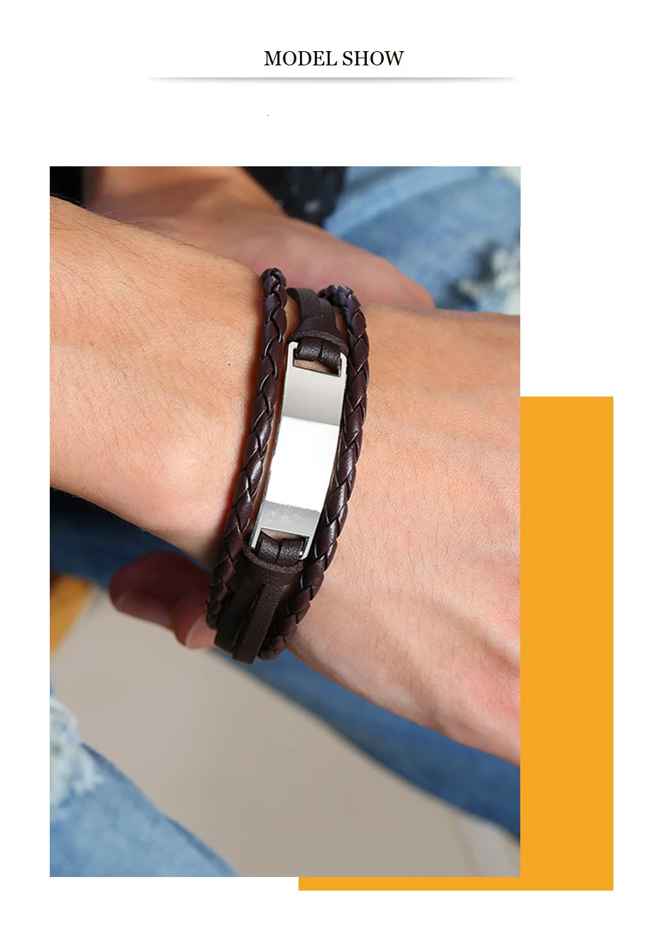 Мужской плетеный кожаный браслет с металлической идентификационной ...