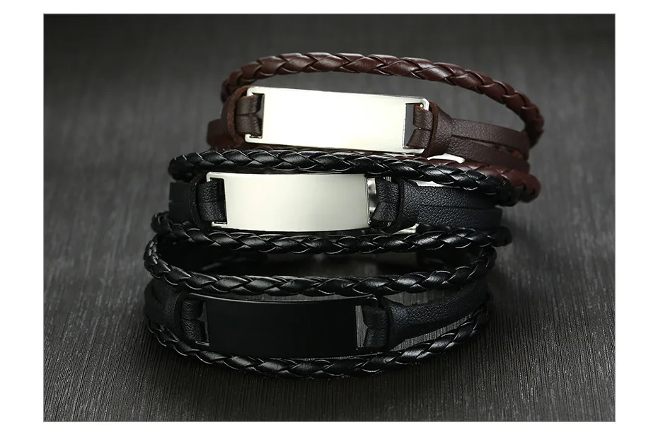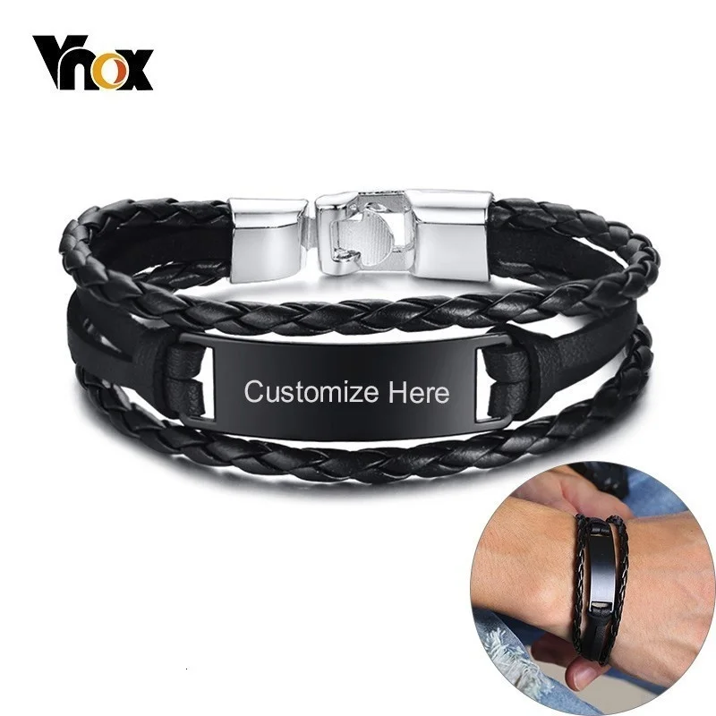 Мужские кожаные браслеты Vnox, Бесплатная пользовательская гравиров...