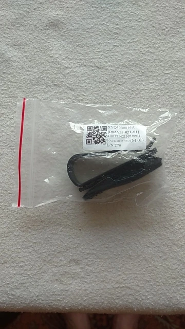 Просто в пакетике. На фото не похож. Пластик не прозрачный, чисто черный. Уже покрыт мелкими царапинами. Клипла из толстого пластика. Вероятно не хрупкого. Но литье ужасное, сплошные заусенцы.