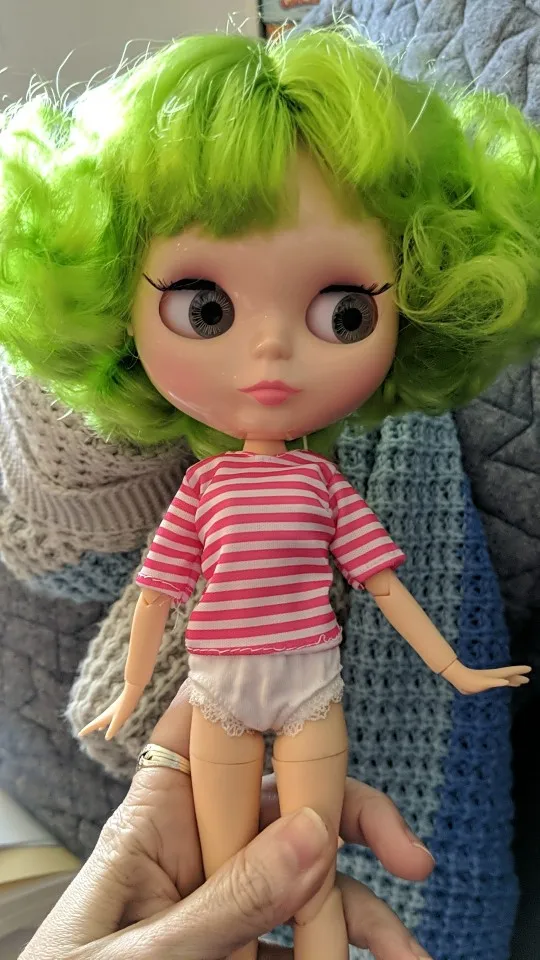 Посылка дошла быстро! Комплект русалки большеват для Блайз (хвост длинный и верх велик), Платье отличное. А вот комплект из джинса ((( (кофта кривова-то пошита, а шорты - швы неровные и торчат ужасно). Будем пробовать исправлять.