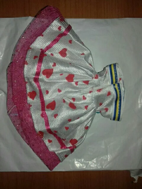 Такое себе. Края не обработаны, платье постоянно сгибается, торчат и осыпаются нитки. Явно не для блайз, ибо в груди велико, пришлось зажать ей её же руками платье. P.S. На фото под платьем черная юбка, её нет в комплекте с нарядом.