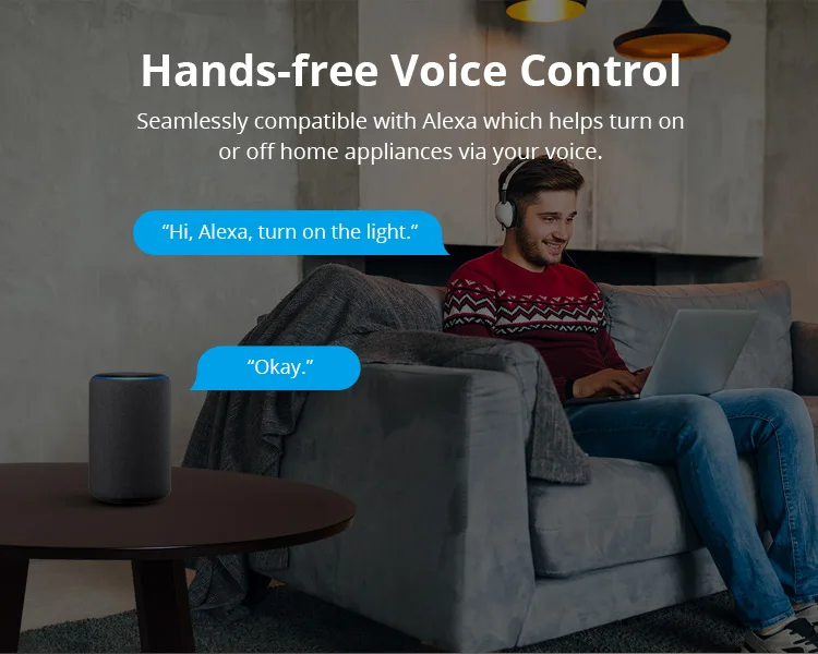 Работает с Alexa и Google Home для голосового управления