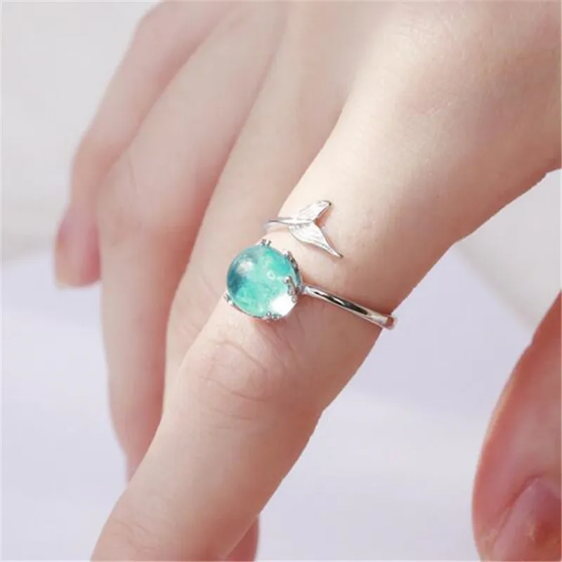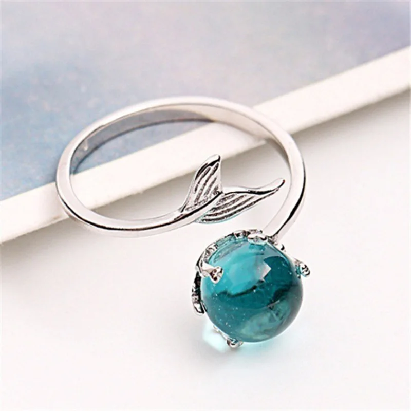 Женские кольца с хвостом русалки, серебристого цвета, с регулируемы...