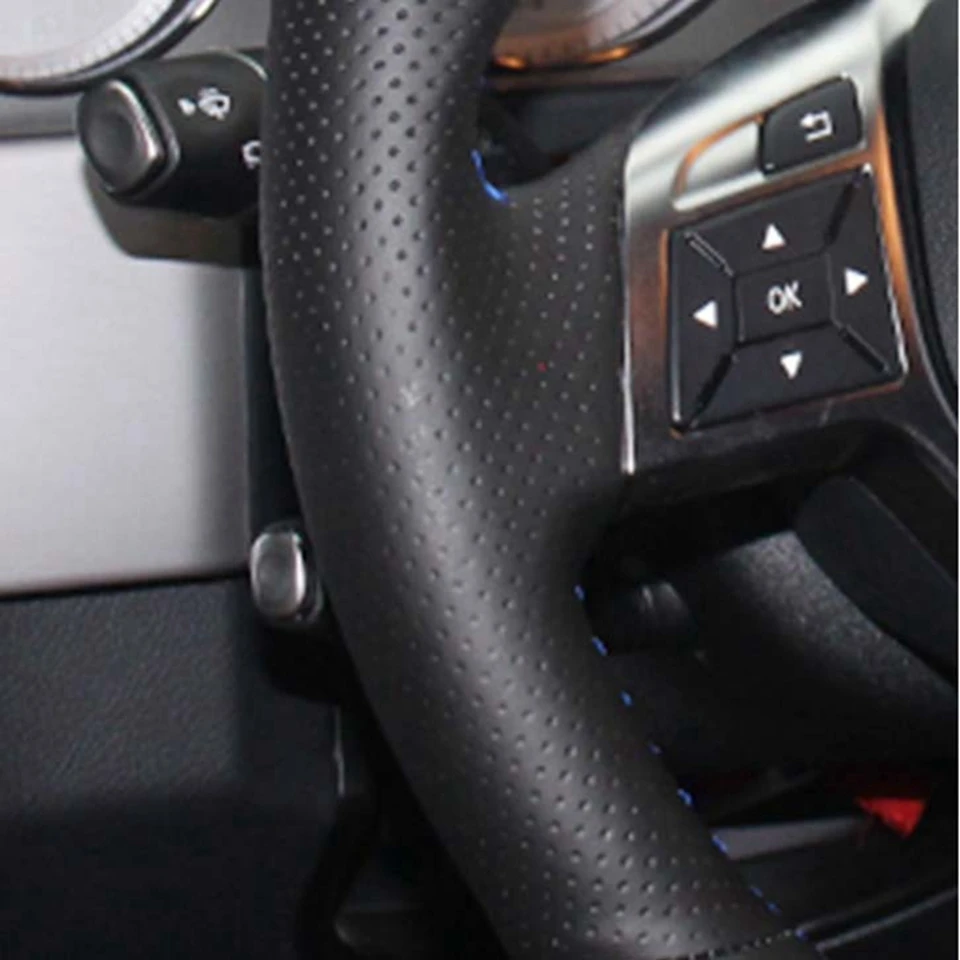 Чехол рулевого колеса автомобиля черная искусственная кожа для Ford...