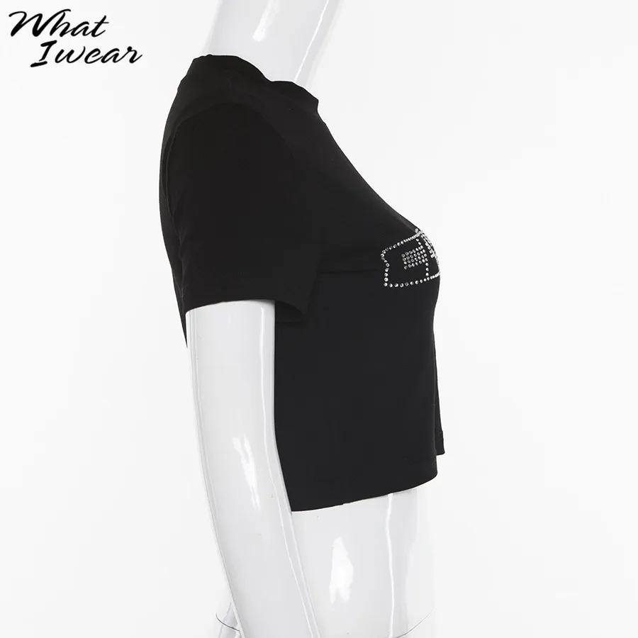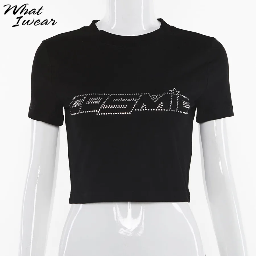 Женские футболки для фитнеса, с круглым вырезом и коротким рукавом, с бриллиантами, эластичные, летние, повседневные, для отпуска