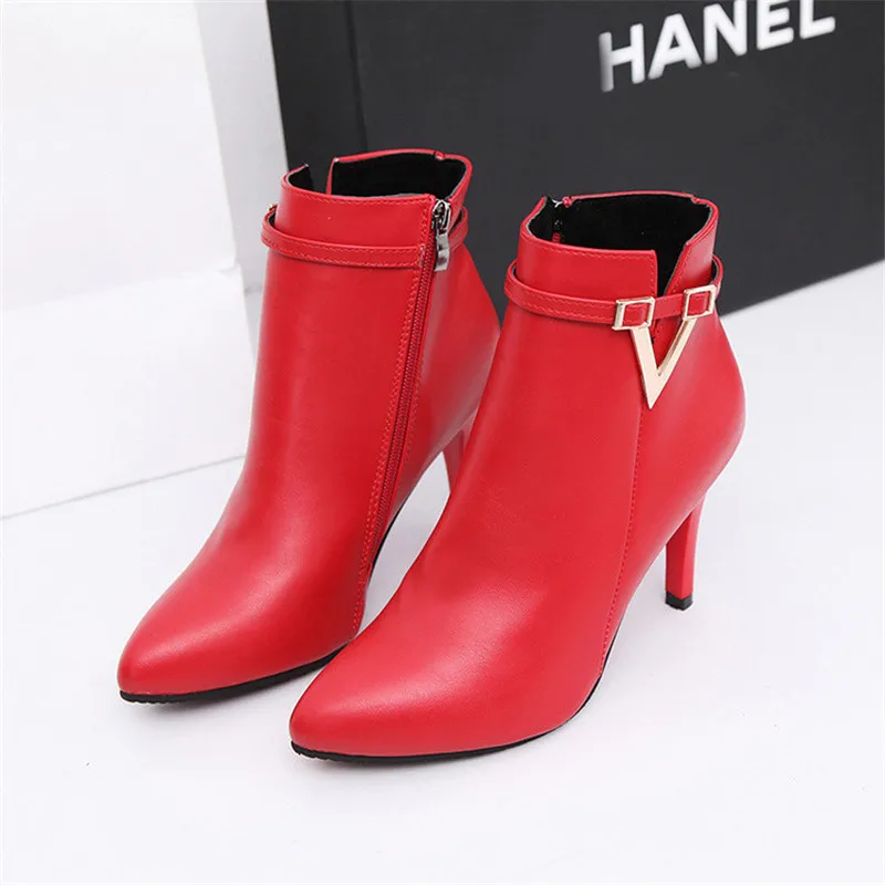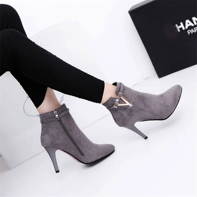 OymlgНовинка туфли на шпильках с закрытым носком года; Женские зимние ботильоны с острым носком; Модная трендовая обувь из флока на резиновой подошве с боковой молнией для работы Вечерние