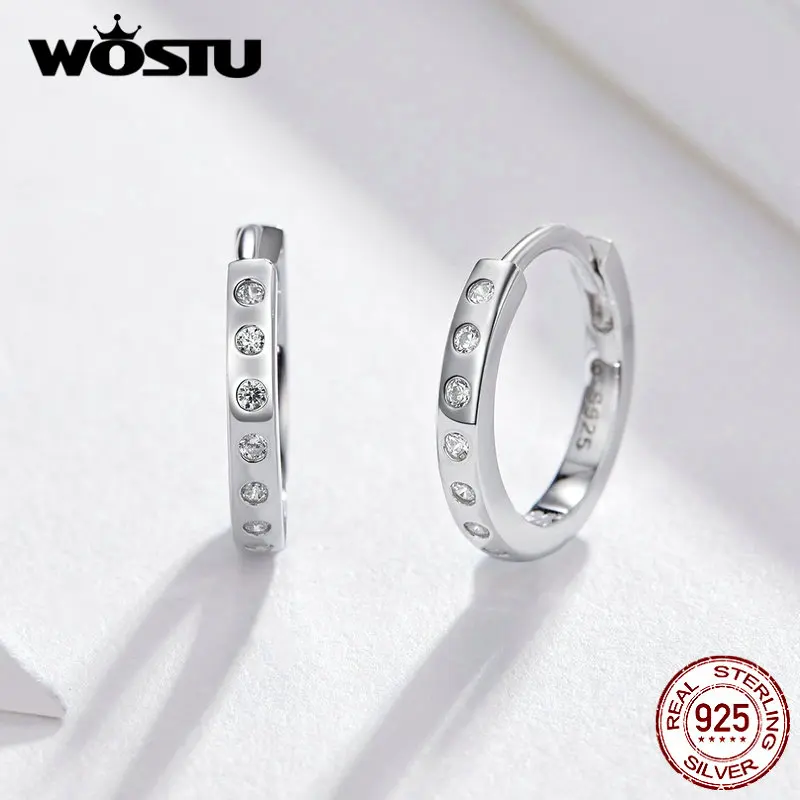 Женские серьги-кольца WOSTU, серьги в Корейском стиле из стерлингового серебра 925 пробы с кристаллами и цирконием, свадебные минималистичные ювелирные изделия FNE101