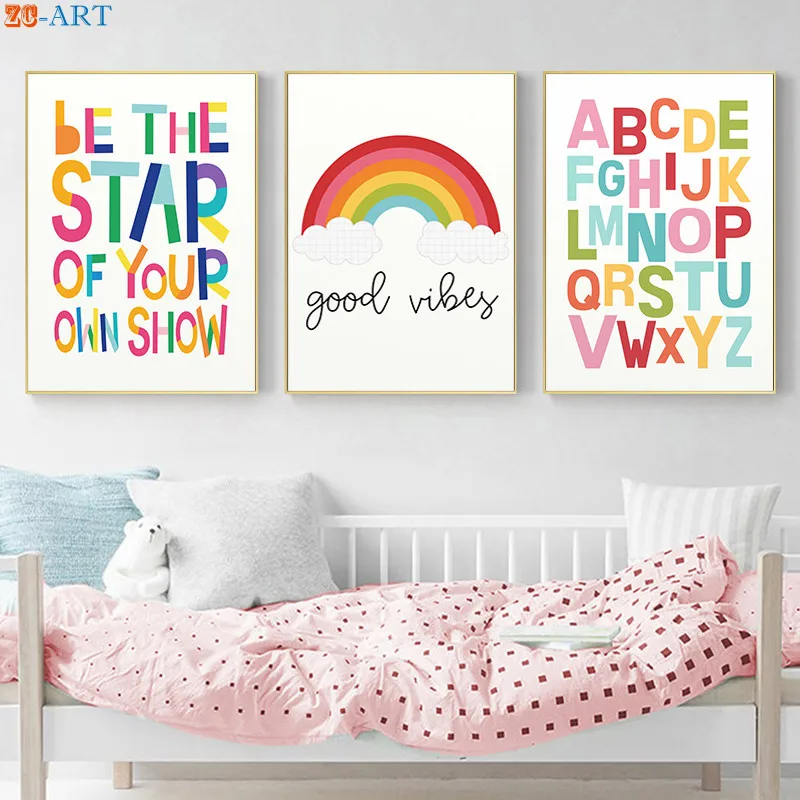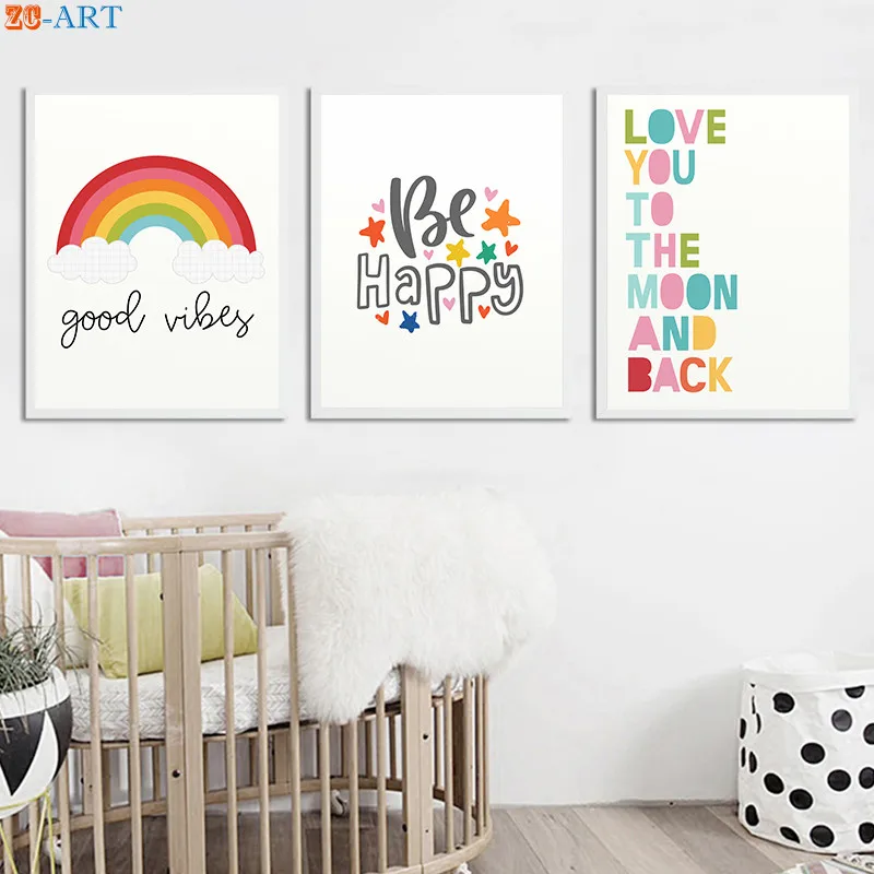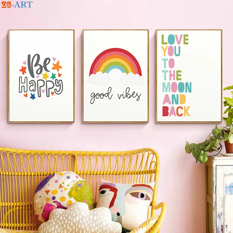 Цитата плакат с принтом радуги, живопись на холсте, мультфильмы пастельных Цвет настенное украшение для детской комнаты, украшение стены Фотографии декора стен в детской комнате