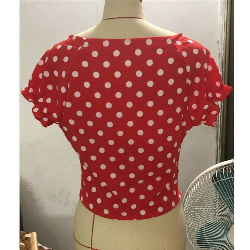 Женская футболка в горошек, с коротким рукавом, в стиле бохо, Летние повседневные топы, топ в горошек