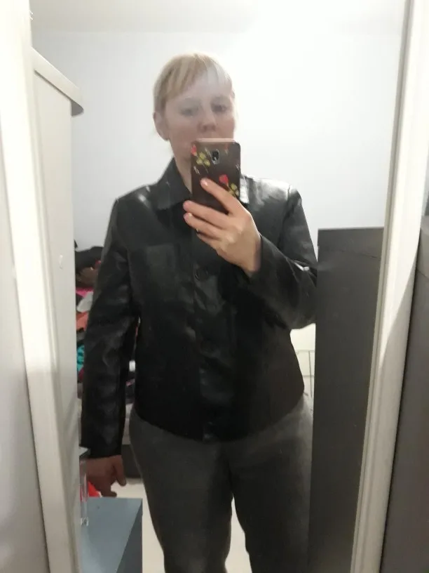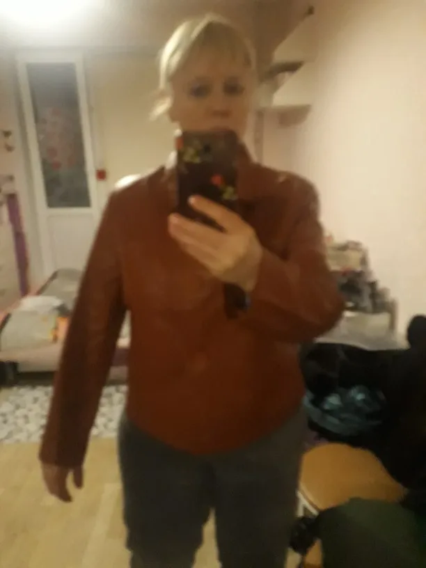Очень довольна покупкой! Отзывы не врут, правда классный жакетик 21.01 оплатила, получила в Барнауле 10.02. Никакой вони, упаковка- обычный зип пакет. Строчки ровненькие, довольно плотный, но эластичный материал, на дешёвую клеёнку не похож. Визуально, как кожа. Выглядит очень прилично. Брала по размерной сетке продавца, там всё абсолютно сходится. На русский "М", с ОГ 94, ОТ 72 отлично подошёл этот XL. Рост 170, рукава не короткие, но впритык, девчонкам выше будут коротки, учтите. Благодарю продавца, процветания ему!
