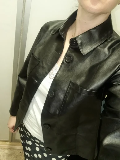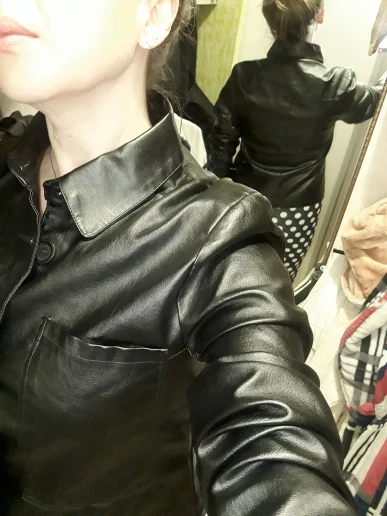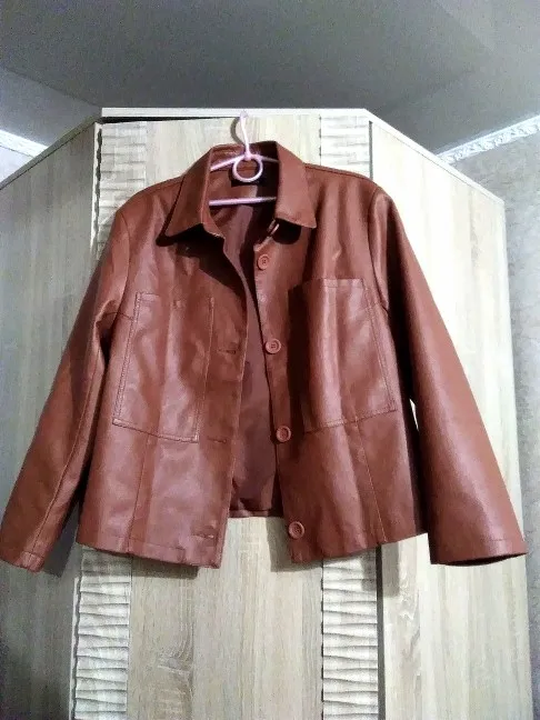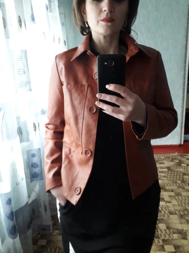 Цвет, как и хотела. Но на мой 46-48 очень свободно. Плечи заказала 42 см. Оказались 45. Широковато на мне. Рукав 58,5 см, тоже длинноват. Мой рост 158. Рукава придется подрезать. Если бы это была зимняя одежда, то рукава были бы самое то. Но для пиджака длинные. На натуральную кожу, как пишут в предыдущих отзывах, совсем не похоже. Но кожзам неплохой. Ткань мягкая. Пошив аккуратный. Писала свои параметры продавцу, но пиджак все же оказался большой.