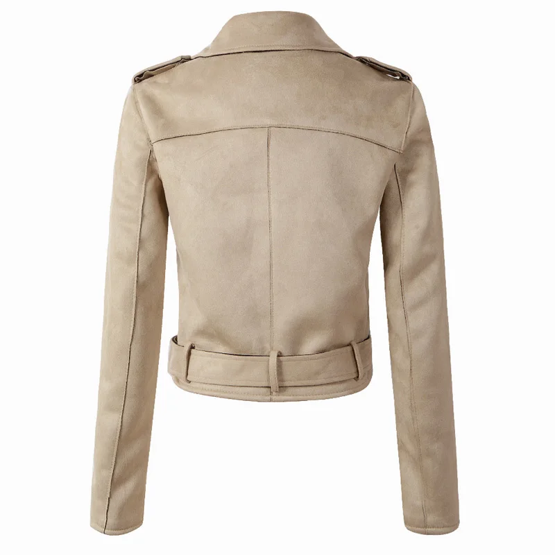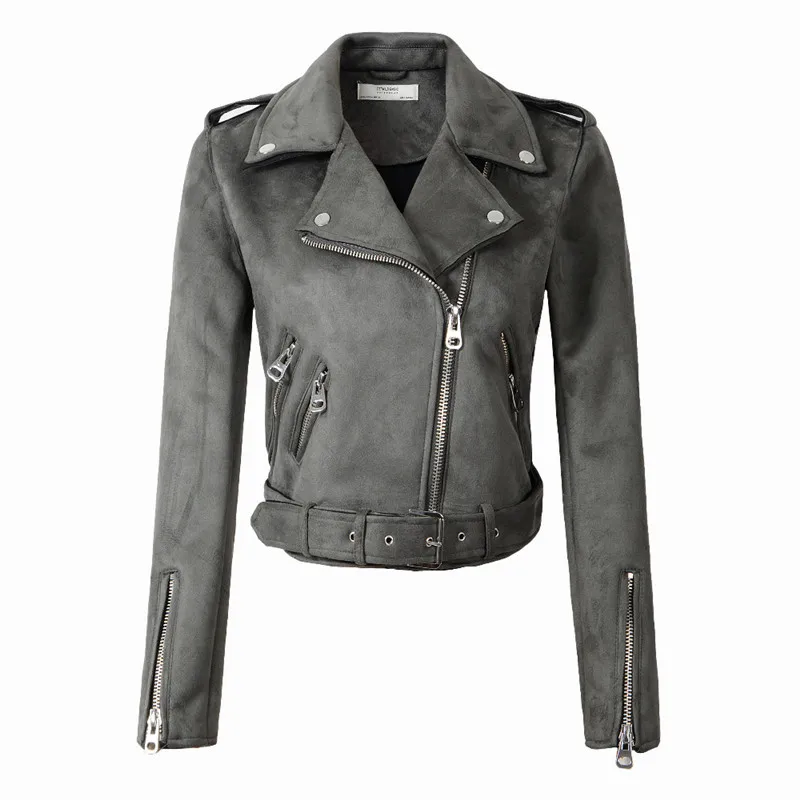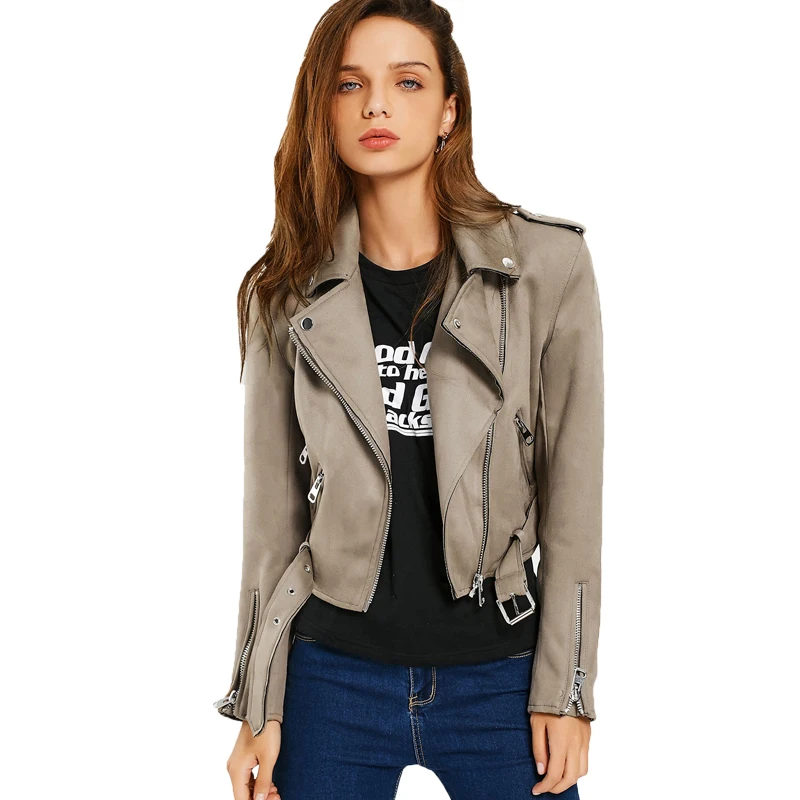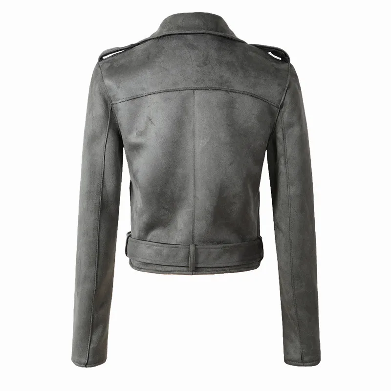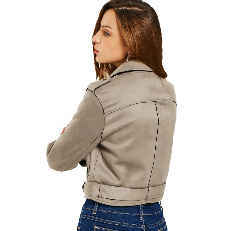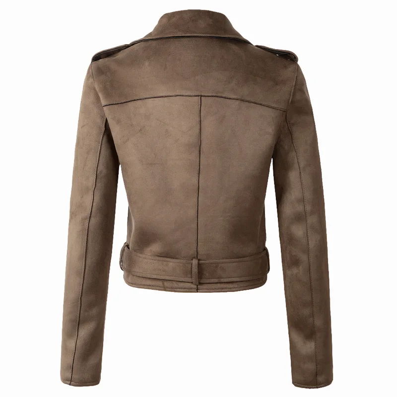 Куртка женская короткая из искусственной замши, на молнии, с отложным воротником