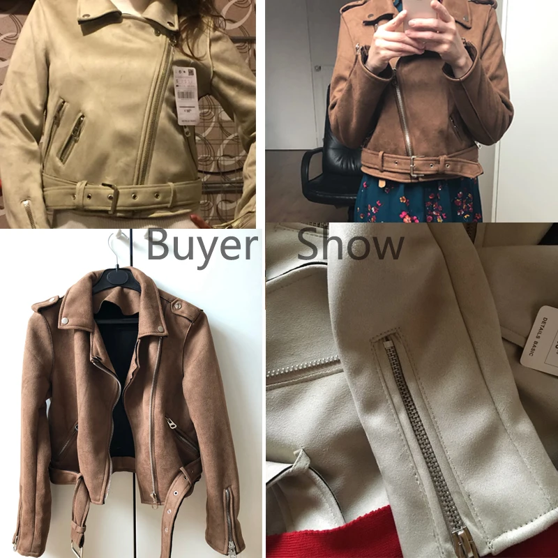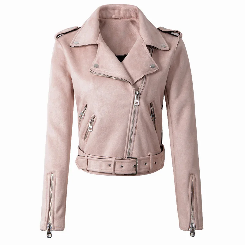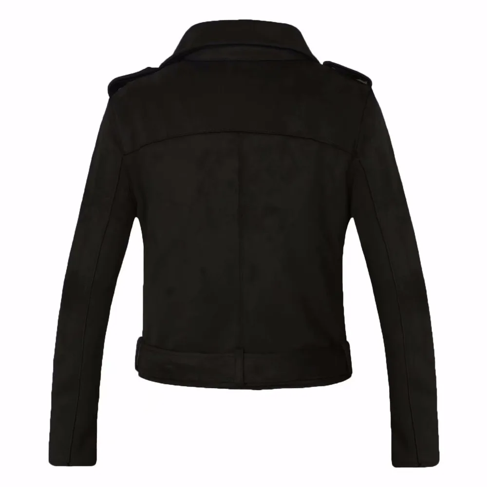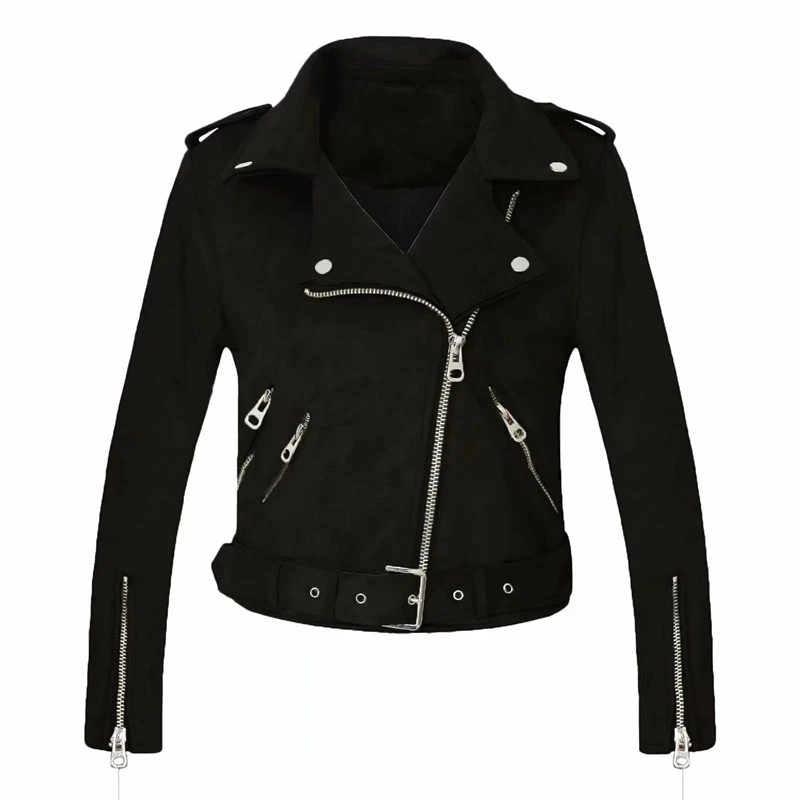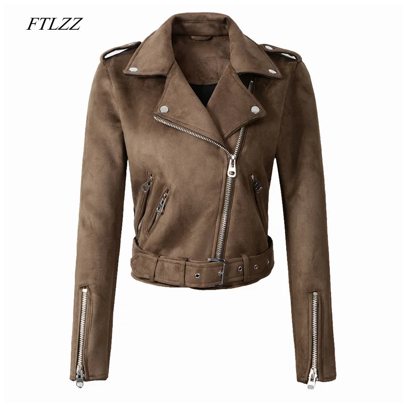 Куртка женская короткая из искусственной замши, на молнии, с отложным воротником
