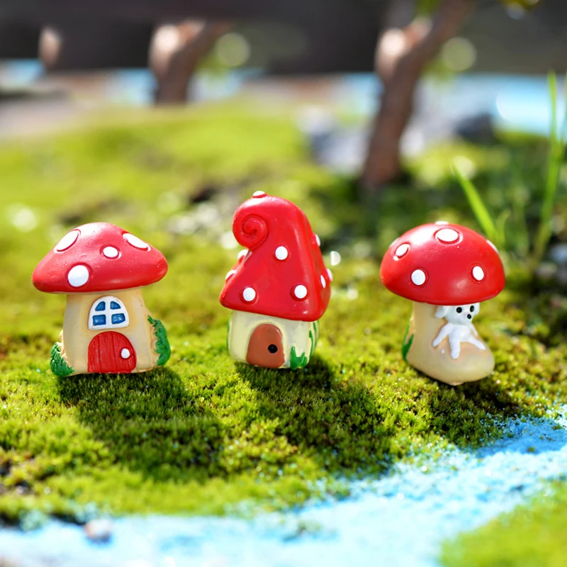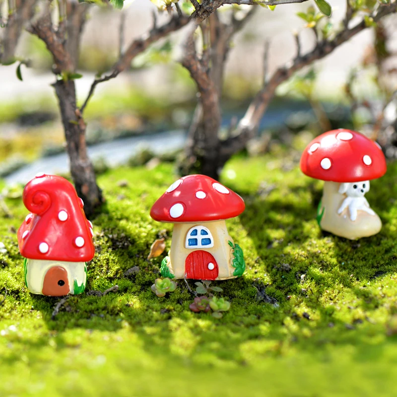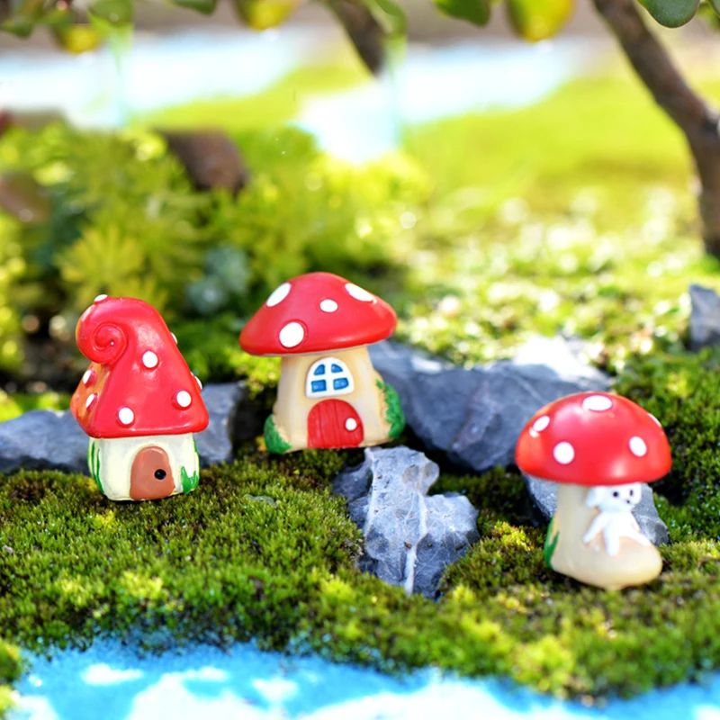 3 шт.компл. милый мультяшный красный грибной домик, 3 вида, для самостоятельной сборки, из смолы, для украшения сада, миниатюрный микро-гном, террариум