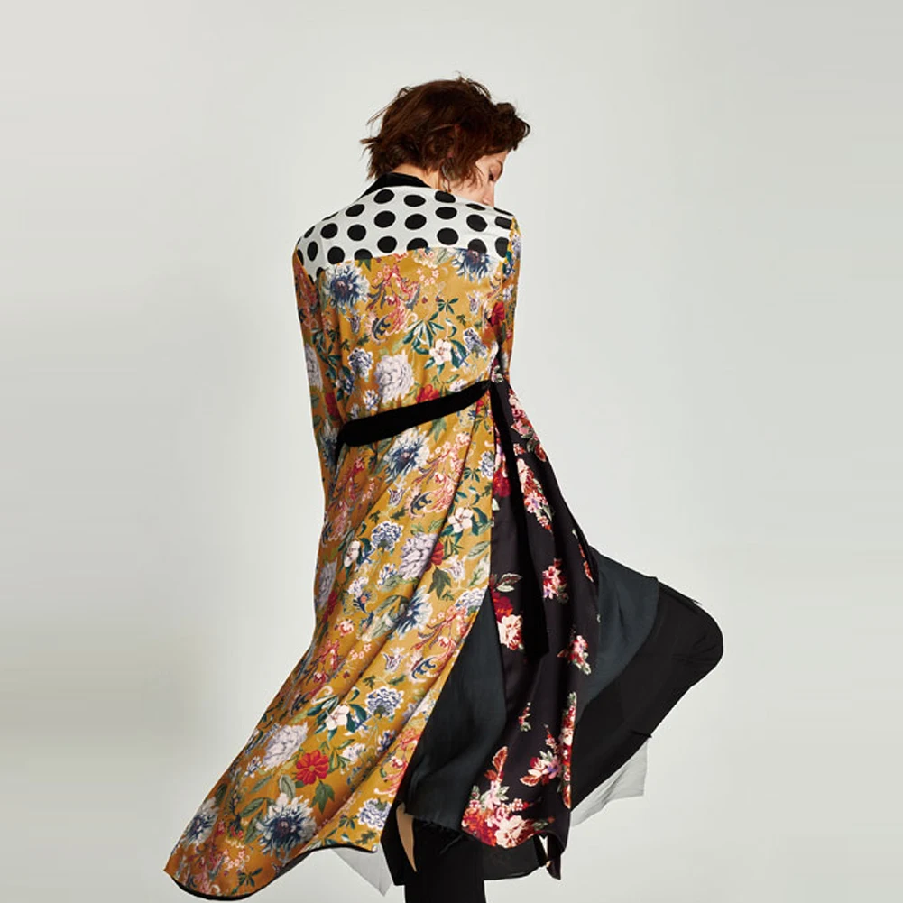 Женское шифоновое кимоно, кардиган с цветочным принтом и длинным рукавом, Повседневная Свободная длинная верхняя одежда, пляжная одежда большого размера, 2019USD 11,98-12,69/Шт.