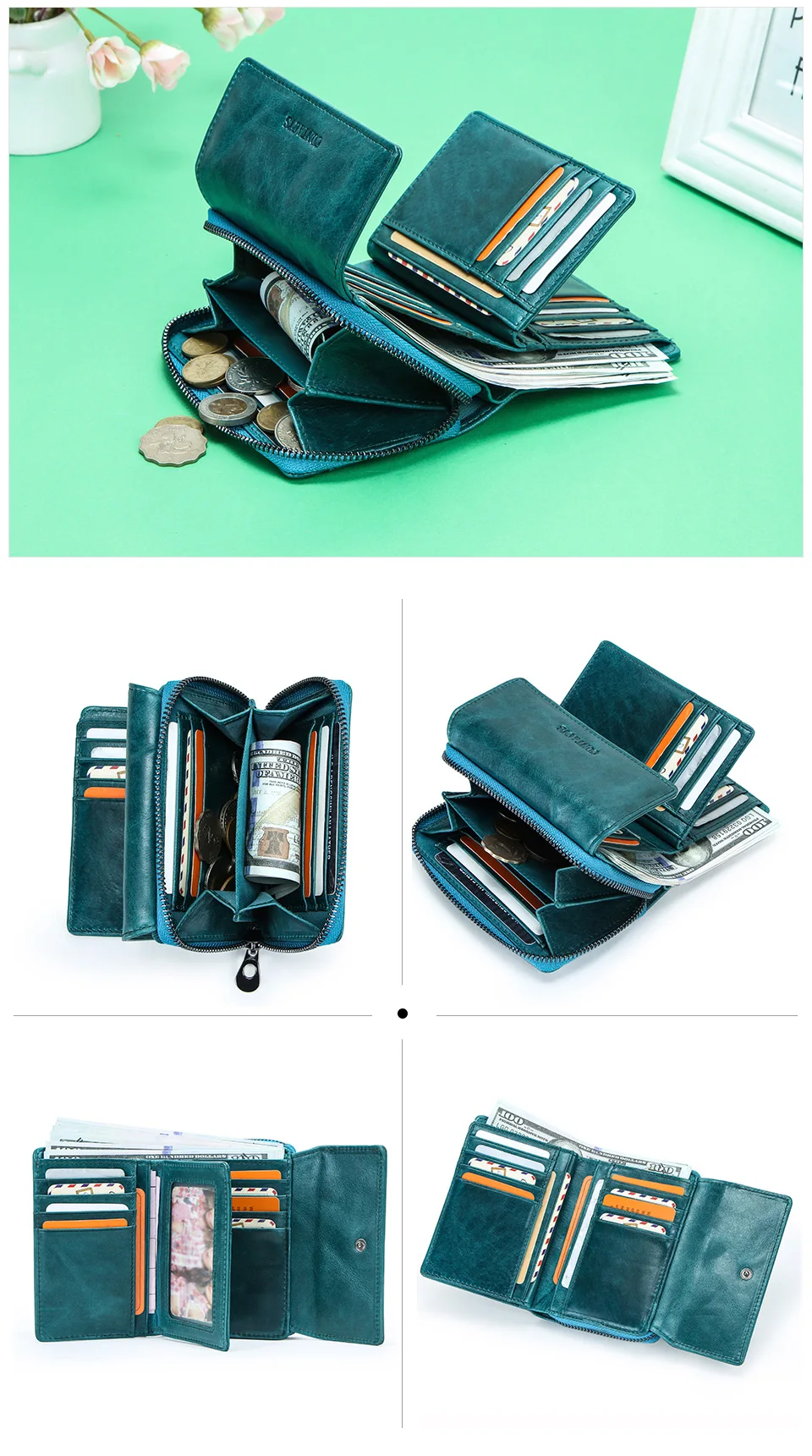 Кошелек женский из натуральной кожи, с отделением для монет и карт