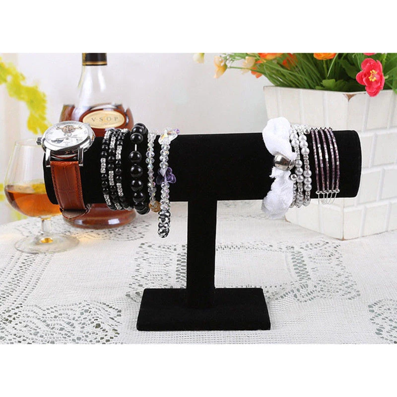3 уровня черный бархат браслет цепочка часы t-бар стойка ювелирных изделий Органайзер Жесткий Дисплей Стенд держатель ювелирных изделий дисплей