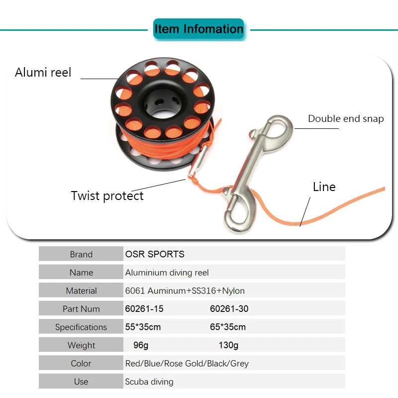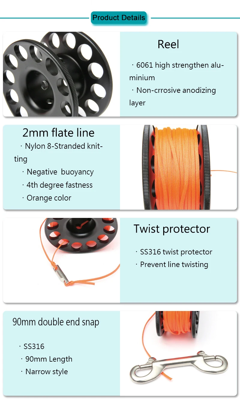 Катушка для подводного плавания из алюминиевого сплава 1530 м с болтом из нержавеющей стали Snap Hook SMB безопасное оборудование аксессуары BCD