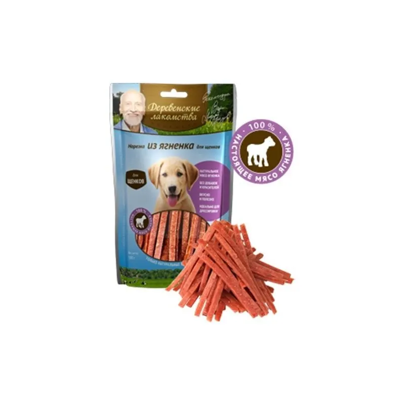 Деревенские лакомства нарезка из ягненка для щенков 90 г