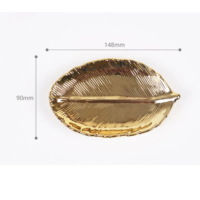 Керамическая тарелка для хранения с золотыми листьями в скандинавском стиле, поднос с золотыми листьями для ювелирных изделий, тарелка для сухих фруктов, домашнее украшение, посуда для ювелирных изделий, 1 шт.
