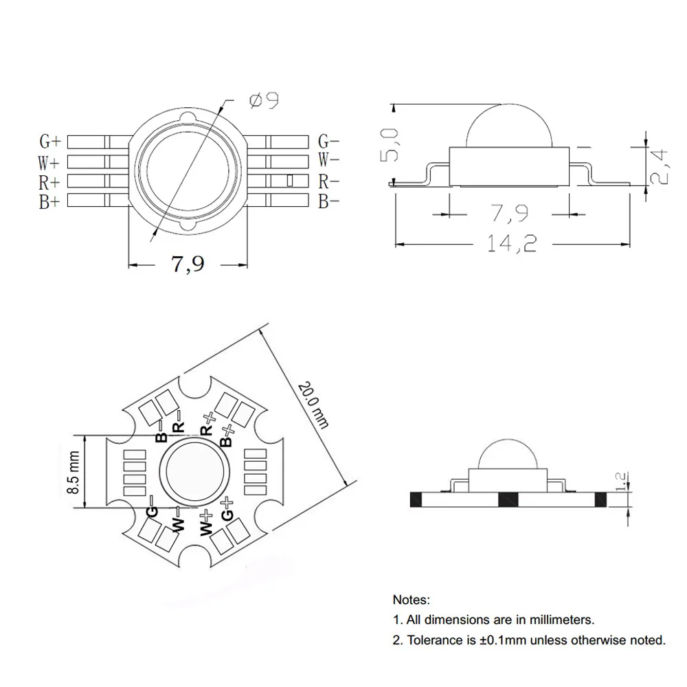 Светодиодный чип 4 Вт, 12 Вт, RGBW, COB SMD с печатной платой, 1 Вт, 3 Вт, 8 контактов, красный, зеленый, синий, белый, полноцветный светодиодный прожектор для ссветильник енического dj dmx