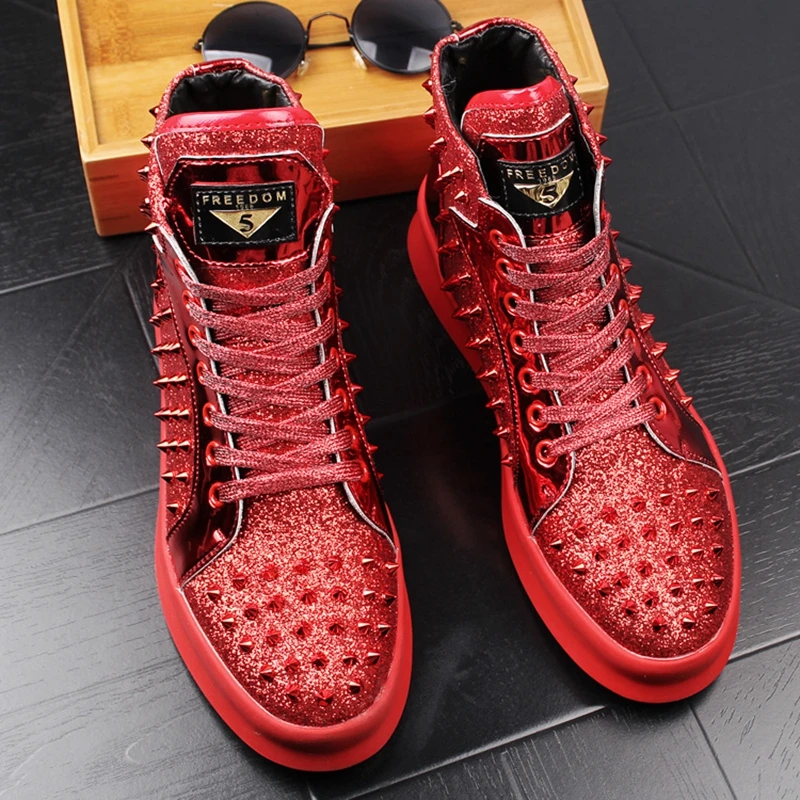 Кроссовки Stephoes мужские с заклепками, модные повседневные полусапожки, высокие кожаные, в стиле панк, хип-хоп, весна-осень