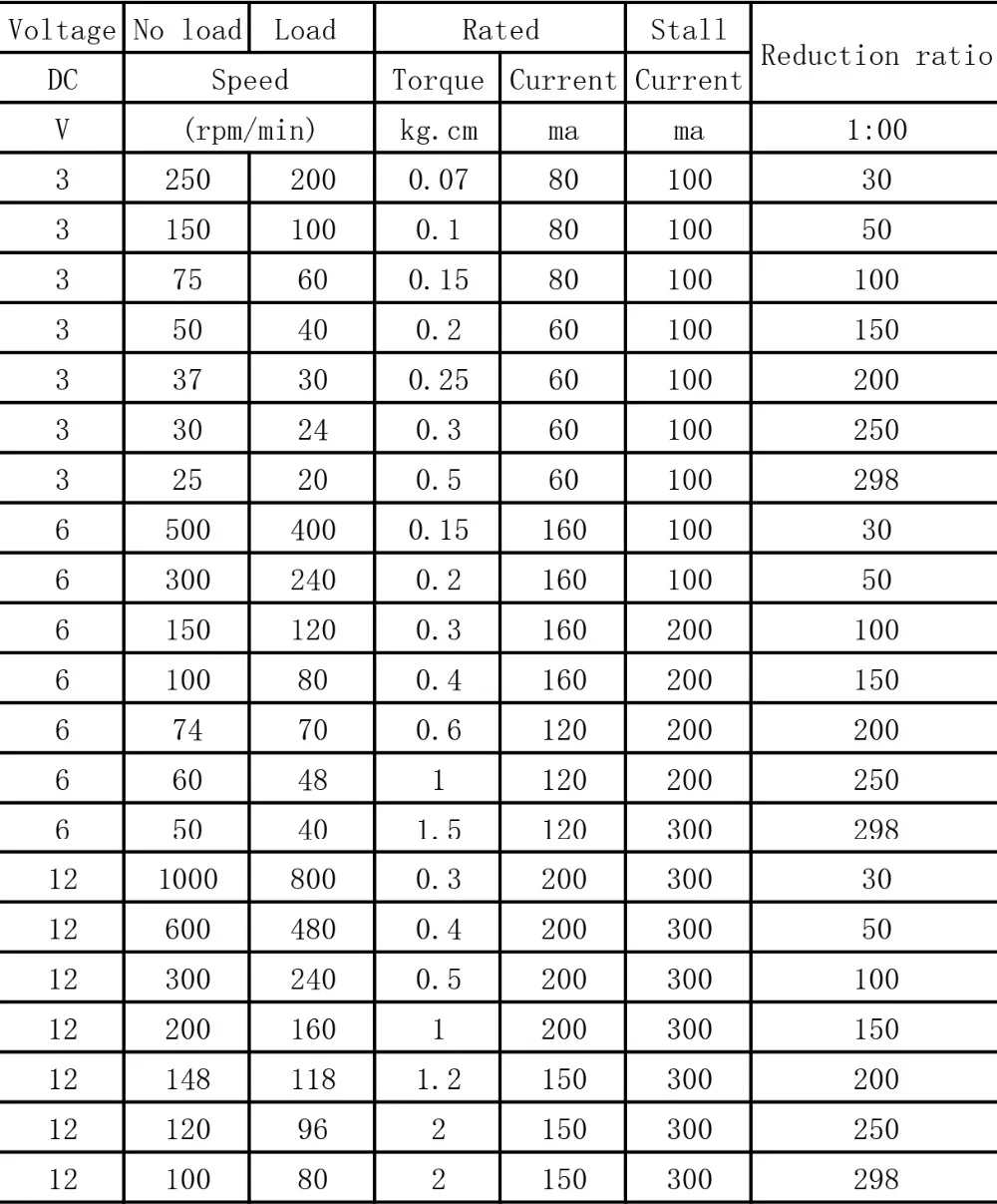 Крутящий Момент0.07-2kg.cm,different speed has different torque