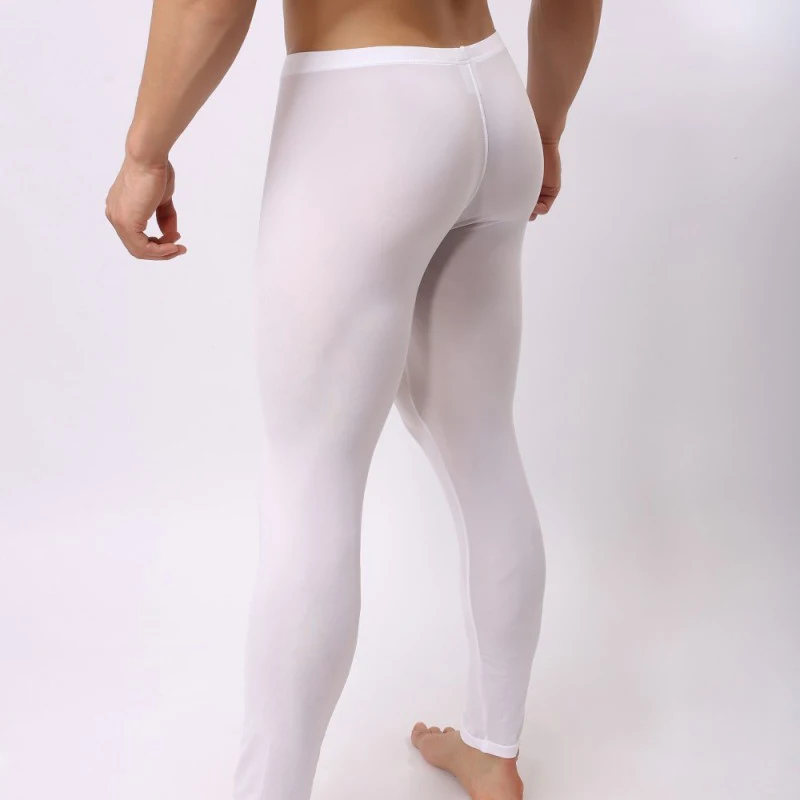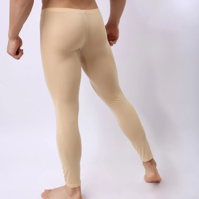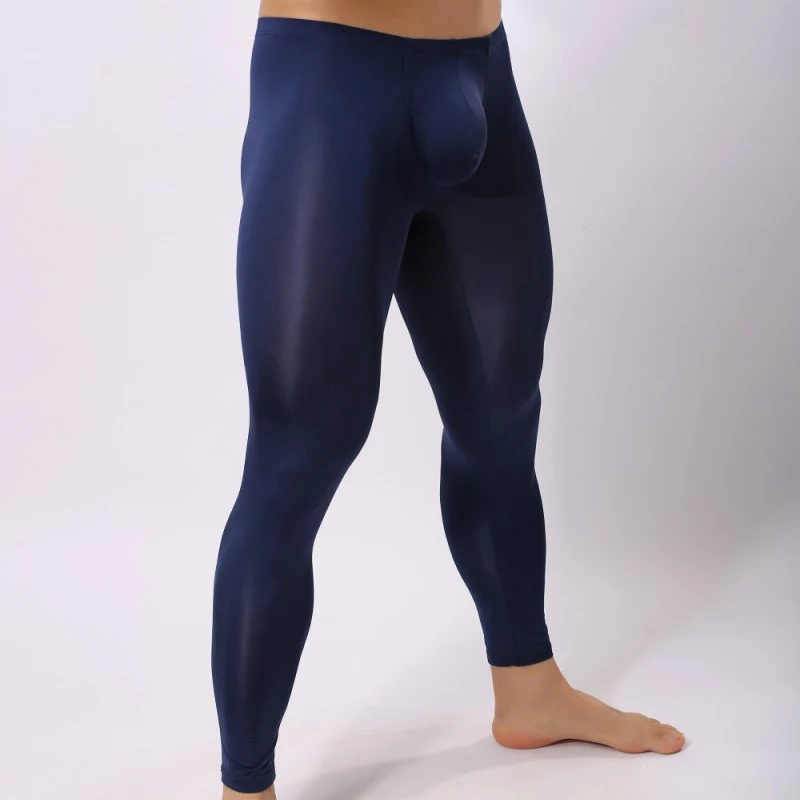 Сексуальные мужские Пижамные штаны для мужчин лед Прозрачные шелковые ультра-тонкие леггинсы, с мешочком для пениса, подштанники брюки для отдыха пижамы размера плюс