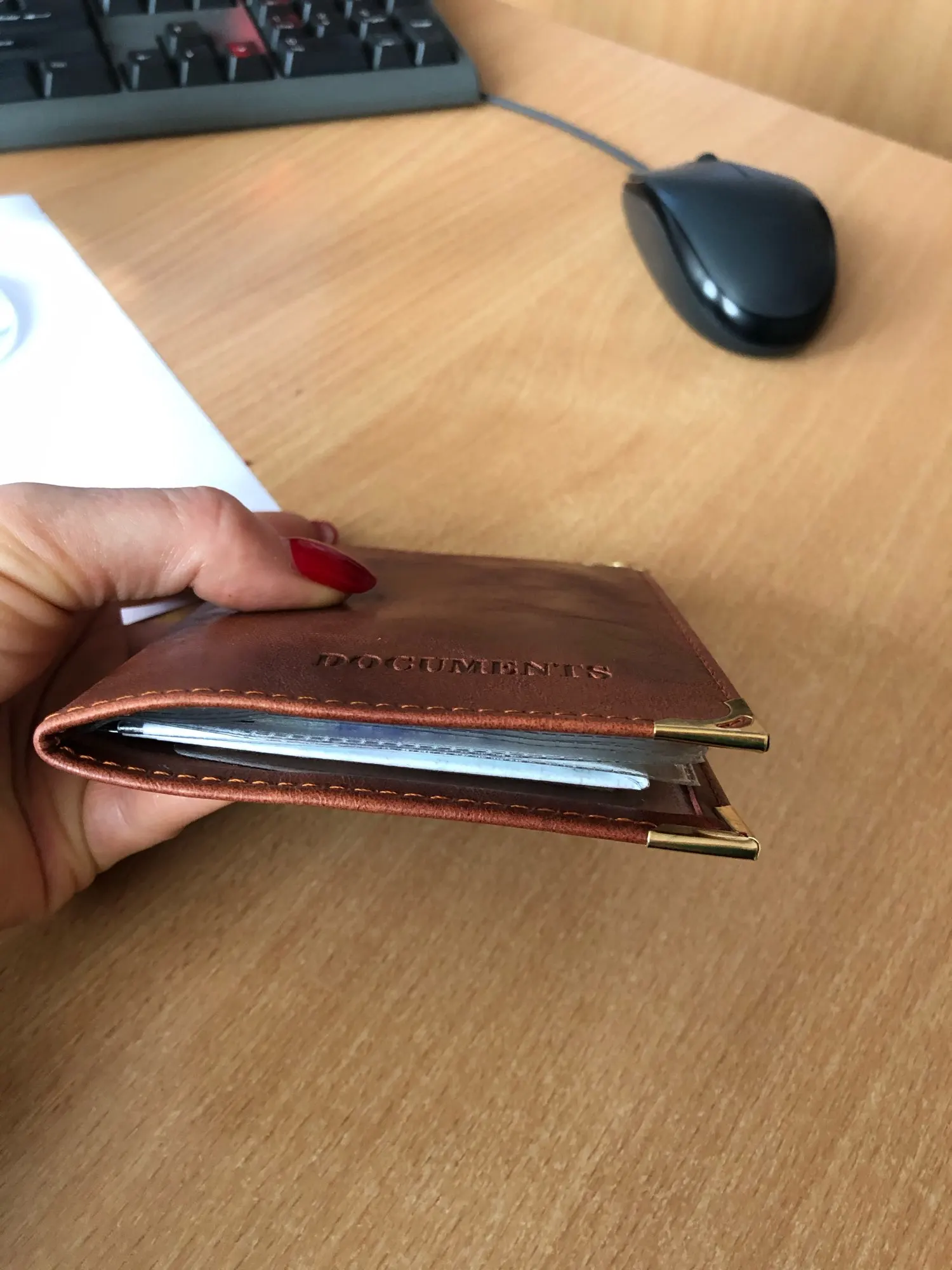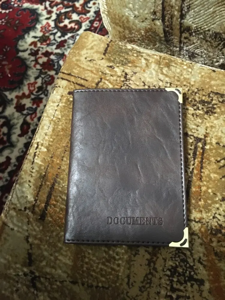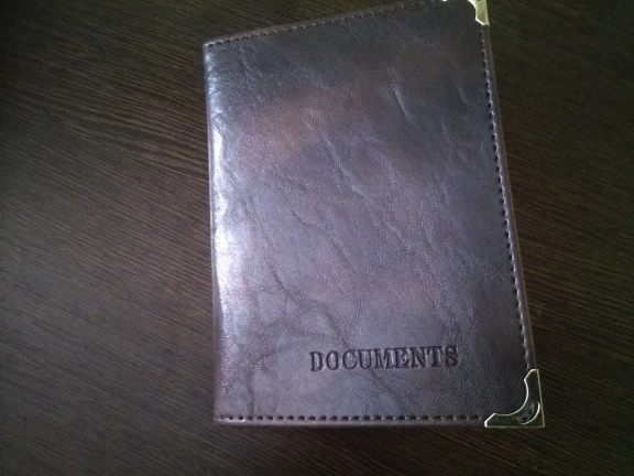 24 дня до Уфы мужу купила для документов права страховка и прочее . Все целое цвет кофе