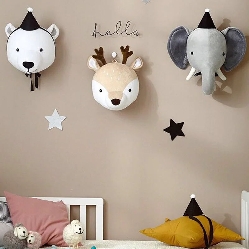 Мягкие игрушки в скандинавском стиле, Настенный декор для детской комнаты, кролик, воздушный шар, слон, 3D голова животного, настенное украшение для детской комнаты, Настенный декор для детской комнаты