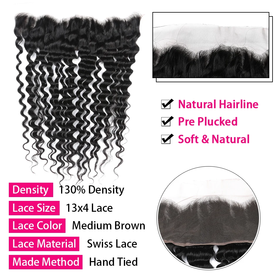Бразильские кудрявые волосы, 4 пряди с кружевной фронтальной, 13x4 ...