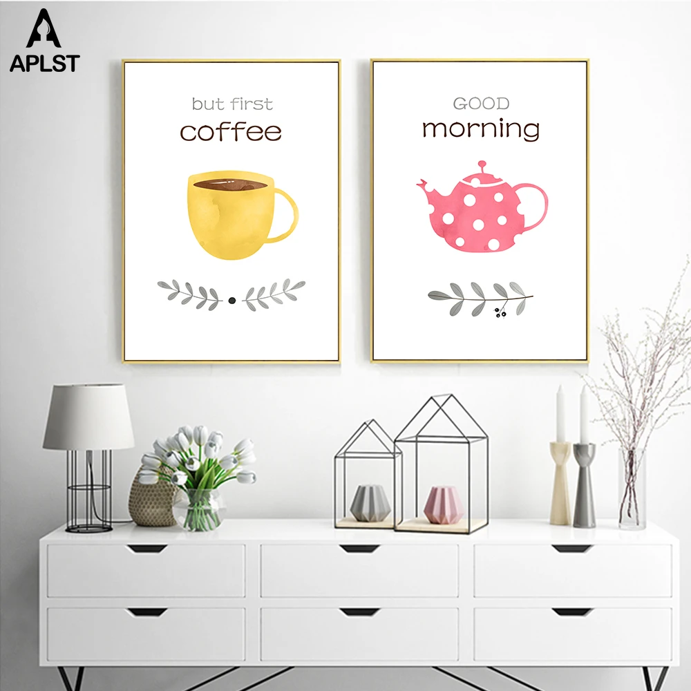 Первый Кофе письма печать и Плакаты доброе утро чайник Холст Wall Art картина живопись для Кухня Гостиная украшения