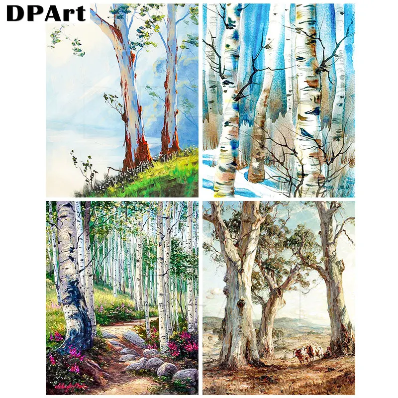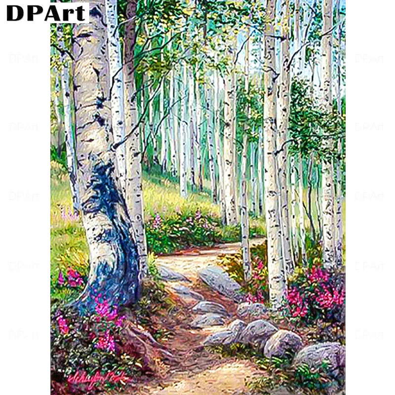 Алмазная живопись 5D, квадратнаякруглая картина, пейзаж, деревья, в...